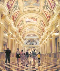 10:00 a.m. - Shopping: While at the Planet Hollywood, walk through its 130-store “Desert Passage” shopping mall which encircles the casino. Don’t spend a lot of time here, since it is one of three hotel malls that we will be exploring today. The other two are the upscale Forum shops at Caesars and Venetian’s Grand Canal Shoppes. You can return to the one you like best later.